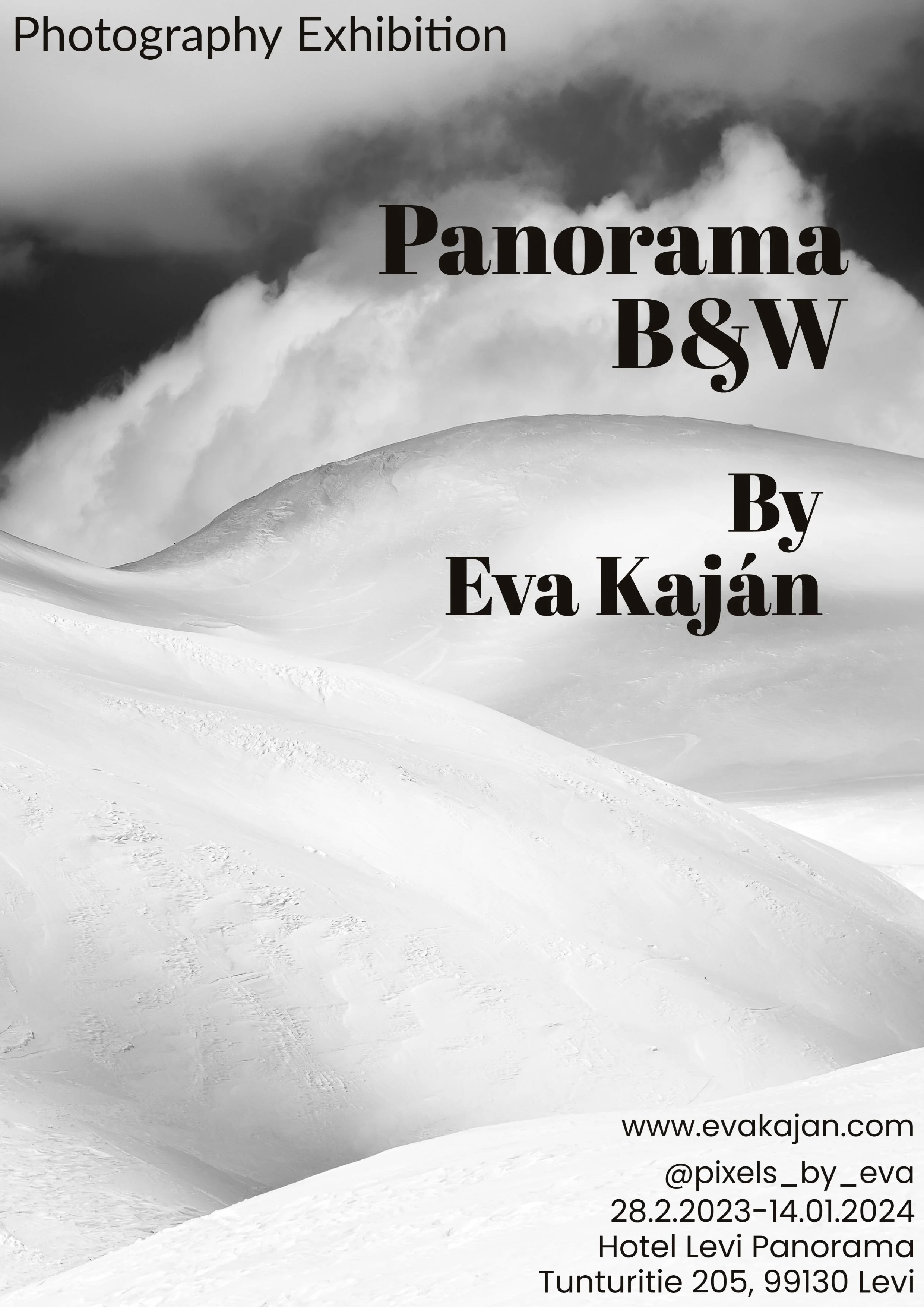 The exhibition is located at the Hotel Levi Panorama, in Levi Ski Resort in Finnish Lapland. It is on display 28.2.2023-14.1.2024.